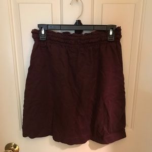 H&M Maroon Ruffled Skirt Size 8/38 91% Lyocell 9% Linen Pre-used in Good Condition