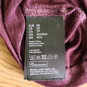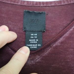 H&M Maroon Vneck T-Shirt with Pocket Cotton Blend