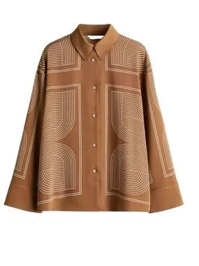 Oversized shirt in twill. Collar, buttons at of front, dropped shoulders, long sleeves, sleeve placket with link button, and button at cuffs. Straight-cut hem.