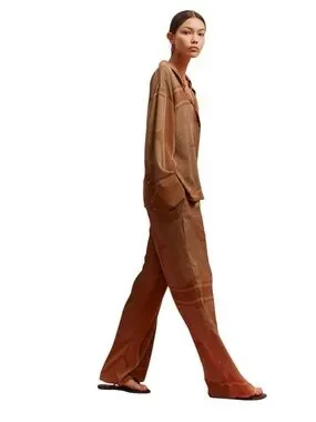 Straight-leg pants in woven fabric. High waist with covered elastic at back and a concealed zipper at one side.