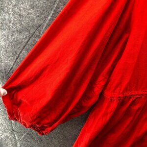 H&M Maternity Linen Blend Dress Womens XL Red Balloon Sleeve A-Line Mini