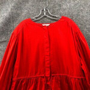 H&M Maternity Linen Blend Shirt Dress Womens XL Red Balloon Sleeve A-Line Mini