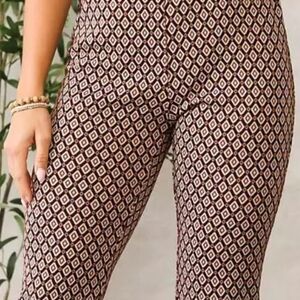 H&M Medallion Cropped Retro Pixie Pant Size 8 Zip Side rust White And Navy Color