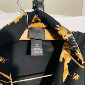 H&M Medium top, palm trees in gold/brown pattern. Button front. 20” pit to pit. Lands at waist. Nice top.