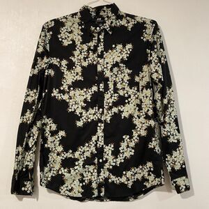 H&M Men’s Floral Button-Up Shirt | Black White Yellow Flower Print Long Sleeve