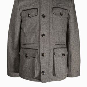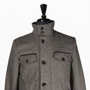 H&M Mens Jacket Gray Military Wool Blend Lined Coat Full Zip Pockets Small 36R