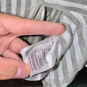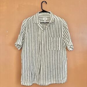H&M Men's Linen Blend Short Sleeve Button Down T-Shirt Tee Green White - Medium