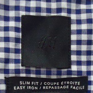 H&M* Men's Long Sleeve Button Down Curved Hem Checkered Dress Shirt~ Size Large