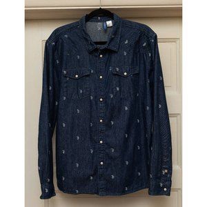 H&M Men's Long Sleeve Paisley Slim Fit Button Down