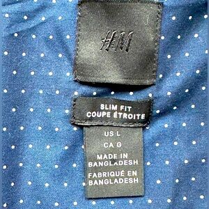 H&M Men’s Navy Blue Short Sleeve Polka Dot Button Down
