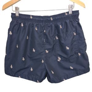 H&M Mens Navy Walrus Print Lined Swimming Trunks Shorts M. Navy blue shorts with printed walrus' on them. Fully lined with 2 lined pockets in front + 1 on back right side. Drawstring waist.