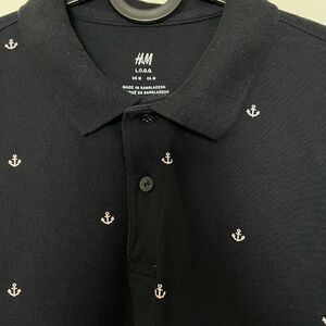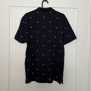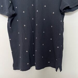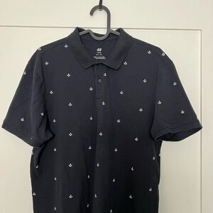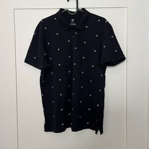 H&M Mens Polo Shirt Medium Navy Anchor Print Short Sleeve Collared Button Cotton