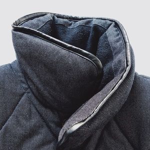 High collar and leather piping detail. Well kept condition on outside. Mild pilling on inside of collar.