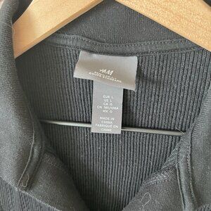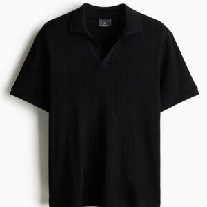 H&M Mens Regular Fit Hole-patterned Polo Shirt - BLACK USED LARGE