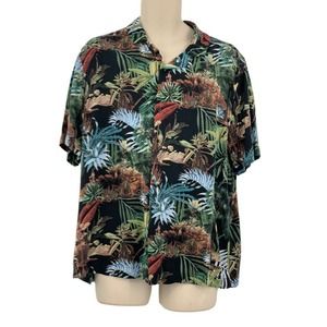 H&M Mens SS Button Down Hawaiian Shirt Black Multi Botanical Tropical XL