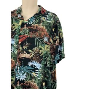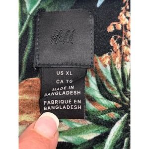 This is a H&M Men's Short Sleeve Button Down Hawaiian Shirt Black Multi Botanical Garden/Tropical Island in a Size XL, made in Bangladesh. MC-E35