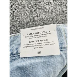 H&M Mens Size 38x32 Jeans Straight Loose Fit Denim Classic Light Blue Wash New