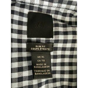 H&M Mens Slim Fit Short Sleeve Black White Checkered Lightweight Shirt XL
