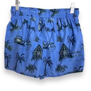 H&M Men's Swim Shorts Sz M Light Blue Palm Tree Drawstring Elastic Waist Lined