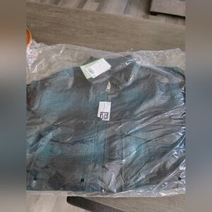 H&M Men's Teal and Black Checkered Jacket Size Small