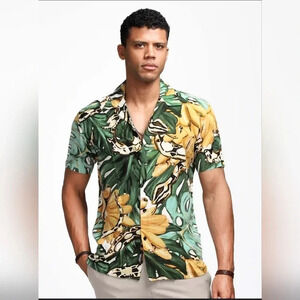 H&M Men's Tropical Button-down Top Size Medium Resort Vacation Spring Summer