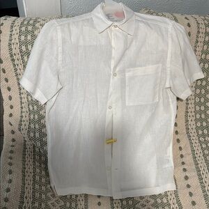 Classic white button down shirt by H&M. Features short sleeves and a chest pocket. Perfect for casual wear.