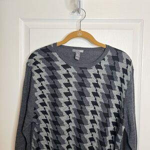 H&M Merino Wool Knit Blend Houndstooth Lightweight Long Sleeve Crew Neck Sweater