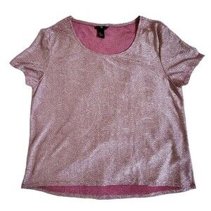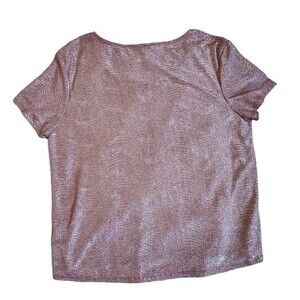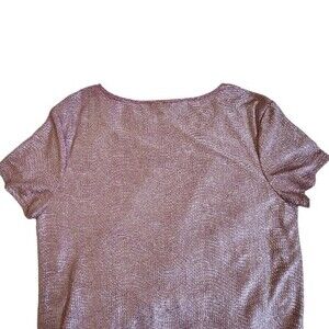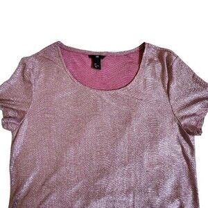 Brand: H&M. Occasion: Casual. Any. Size Type: Regular. Size (Women's): L. Material: 100% polyester. Neckline: Round neck. Sleeve Length: Short sleeve. Color: Pink. Pattern: Metallic. Features: Lightweight.