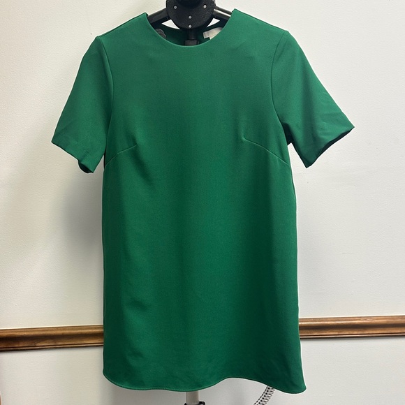 Simple short-sleeve mini dress from H&M. Smooth, lightweight fabric with clean lines. Subtle seam detailing at the chest for structure.