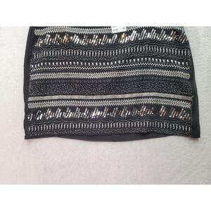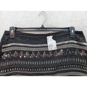 H&M Mini Skirt Women 14 Black Sequin Metallic Embroidered Beaded Sequin Back Zip