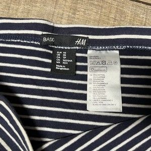 H&M Mini Skirt XS Straight Fitted Striped Cotton Blend Jersey Stretch Navy