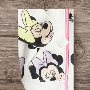 Sold Out - New with Tags Sweatshirt jacket with a printed motif at front and soft, brushed inside. Jersey-lined hood, zipper at front, dropped shoulders, and long sleeves. Ribbing at cuffs and hem. DESCRIPTION: White/black/pink/light turquoise/light yellow, Patterned, Minnie Mouse, Minnie Mouse, Disney