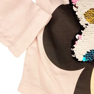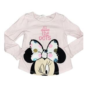Light pink long sleeve shirt. Minnie Mouse graphic on the front with flippable sequins. Shirt is in very good used condition and has minor wash wear. No holes or stains. Size: 3-4Y.