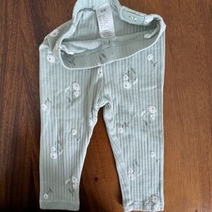 Adorable H&M mint green baby girl outfit in EUC, with ruffled top and floral pattern. Includes matching leggings with adjustable waist. Size 9M.