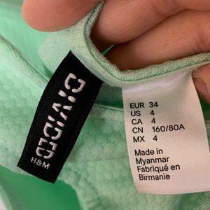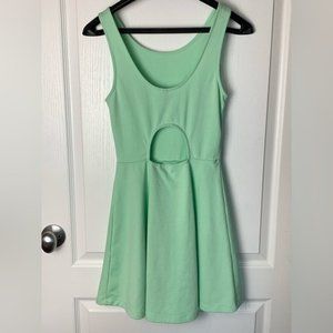 H&M Mint Green Textured Skater Mini-Dress with Cut Out Back Detail