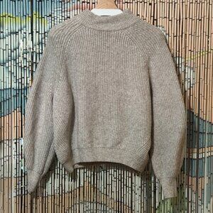 H&M Mock Neck Ribbed Knit Sweater, Heathered Oatmeal, Small