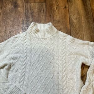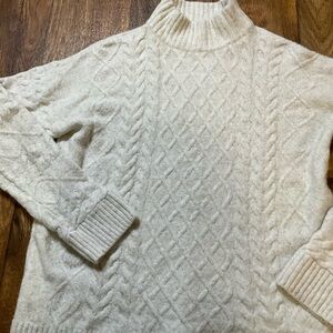 H&M Mock Turtleneck Cream Cable Knit Sweater Womens Small Soft Cozy