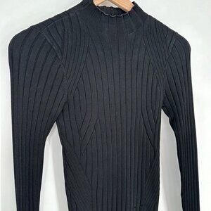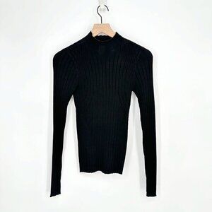 H&M Mockenck Ribbed Knit Sweater Fitted Long Sleeve Black Women's Small
