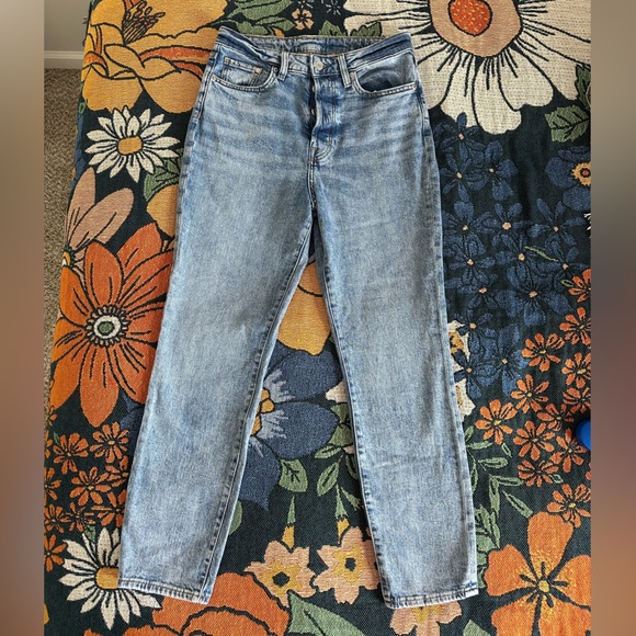 Button fly H&M mom jeans, US size 6, worn less than a handful of times! Inseam length is 27”