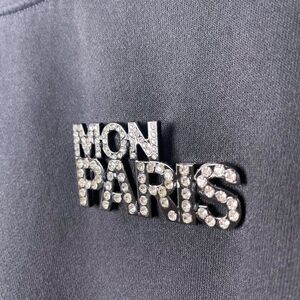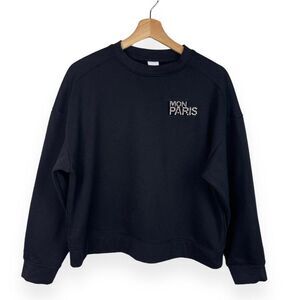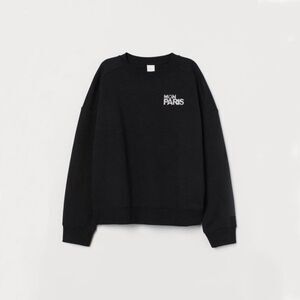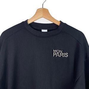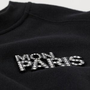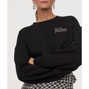 Soft sweatshirt from H&M in classic black emblazoned with rhinestone crystal โMon Parisโ graphic text at front. Ooh la la ๐ซ๐ท