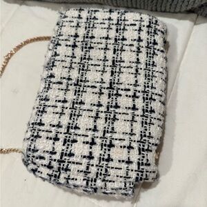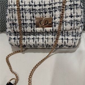 H&M Monochrome Tweed Crossbody Bag with Gold Chain