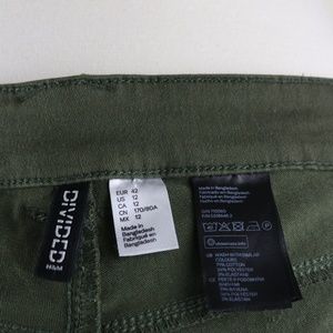 Go biker or go chic. Forest green skinny moto pants from H&M. Features zipper pockets in the front and moto detailing on front knee-part of pant. One button + zipper closure and 6 seamless pockets (4 in front, 2 in back.)
