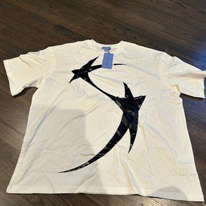 New with tags Mugler x H&M Stars Graphic T-Shirt. Great condition! Very soft and comfortable shirt. Runs oversized. Would make a perfect t-shirt dress or a comfortable oversized tee!