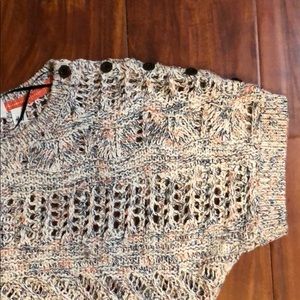 H&M sweater with 5 buttons along the left sleeve of sweater. See through sweater so best worn with tank or bandeau.