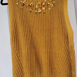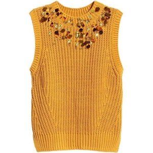 H&M Mustard Sequined Neckline Sleeveless Knitted Vest