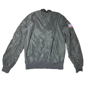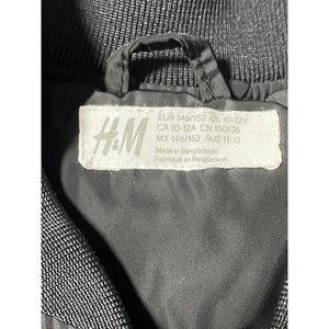 H&M NASA Bomber Flight Jacket Black USA Flag Patch Boys Size 10 12