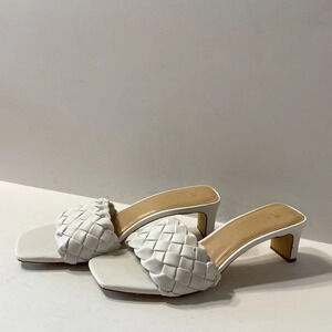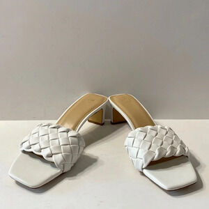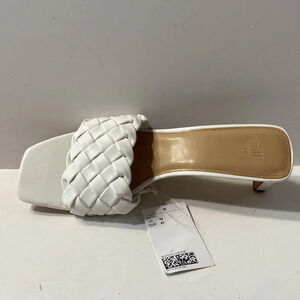 H&M (NEW) White Boho Faux Leather Braided Preppy Slides Kitten Heels Sandals 41