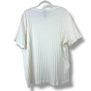 H&M Light Beige Cream Regular Fit Knitted Short Sleeve Crewneck Ribbed T-Shirt. Soft cotton blend material with round neckline and straight hem. Classic look.