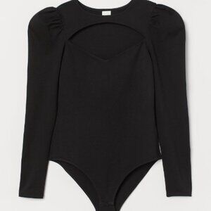 {H&M} NWOT Puff-sleeved Bodysuit Thick Jersey Cut out Key hole Sweat Heart