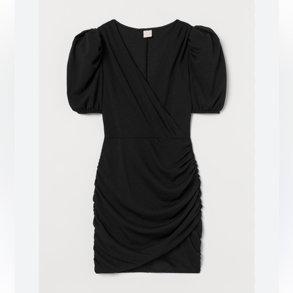 H&M NWOT Ruched Puff-sleeved Mini Wrap Dress